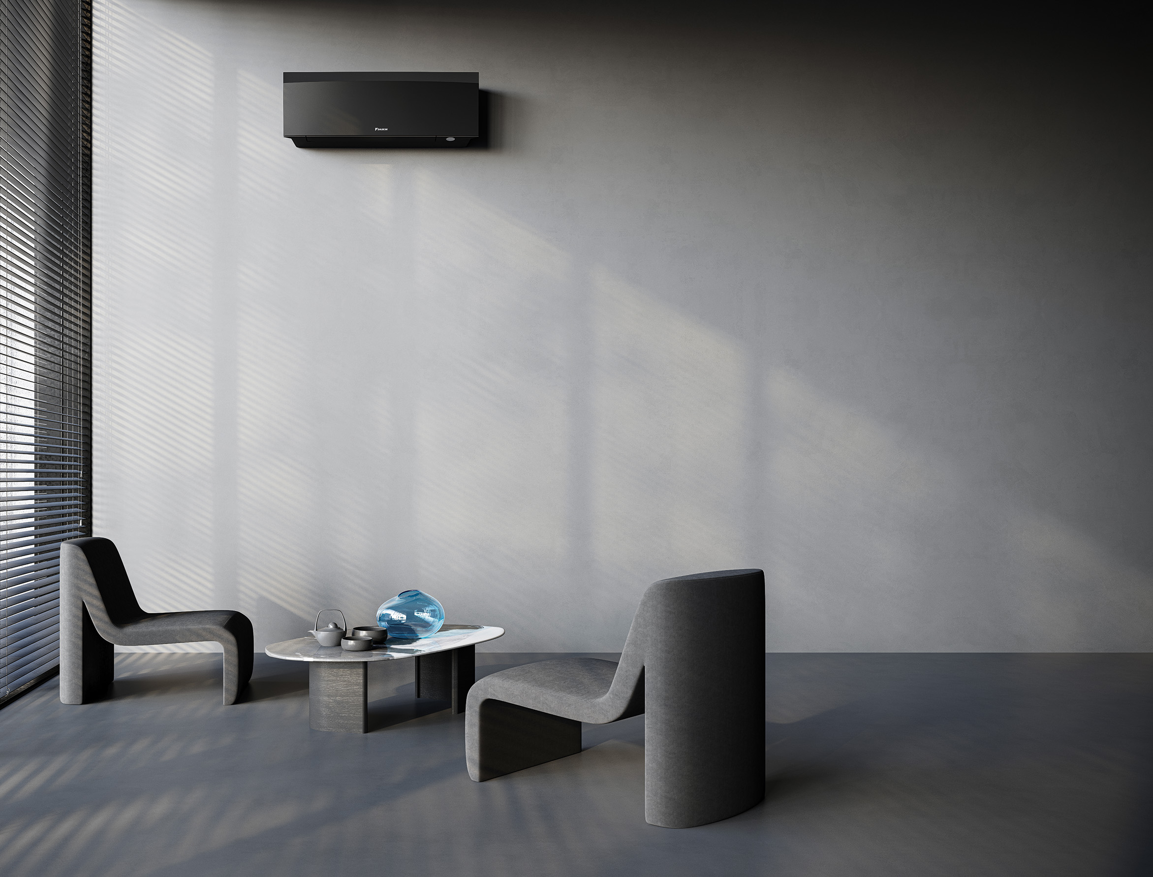 Kaip įprasta, šilumos siurblių ir oro kondicionierių dizaine dažniausiai yra naudojamos aiškios tiesios linijos ir statūs kampai. Daikin Emura šiuo atžvilgiu yra išskirtinė. Dėka išgaubtos priekinės ir galinės panelės, vidinis blokas įgauna unikalią 3D formą. Išgaubtos linijos primena subalansuotą oro srautą ir tuo pačiu sukuria unikalų vizualinį efektą Jūsų interjere.